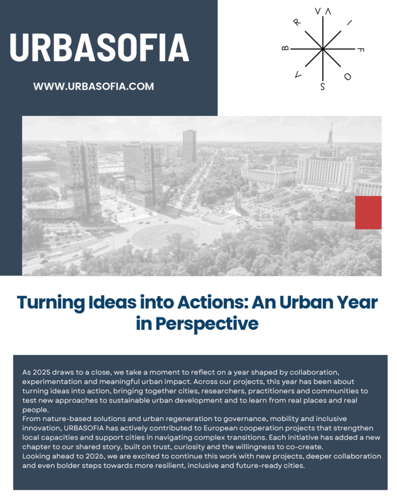 As 2025 draws to a close, we invite you to explore our annual retrospective, a year shaped by collaboration, experimentation, and meaningful urban impact. At URBASOFIA, our mission has been to move beyond theory and turn ambitious ideas into concrete actions, bringing together cities, researchers, and communities to test new approaches to sustainable development.